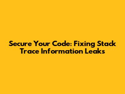 Secure Your Code: Fixing Stack Trace Information Leaks
